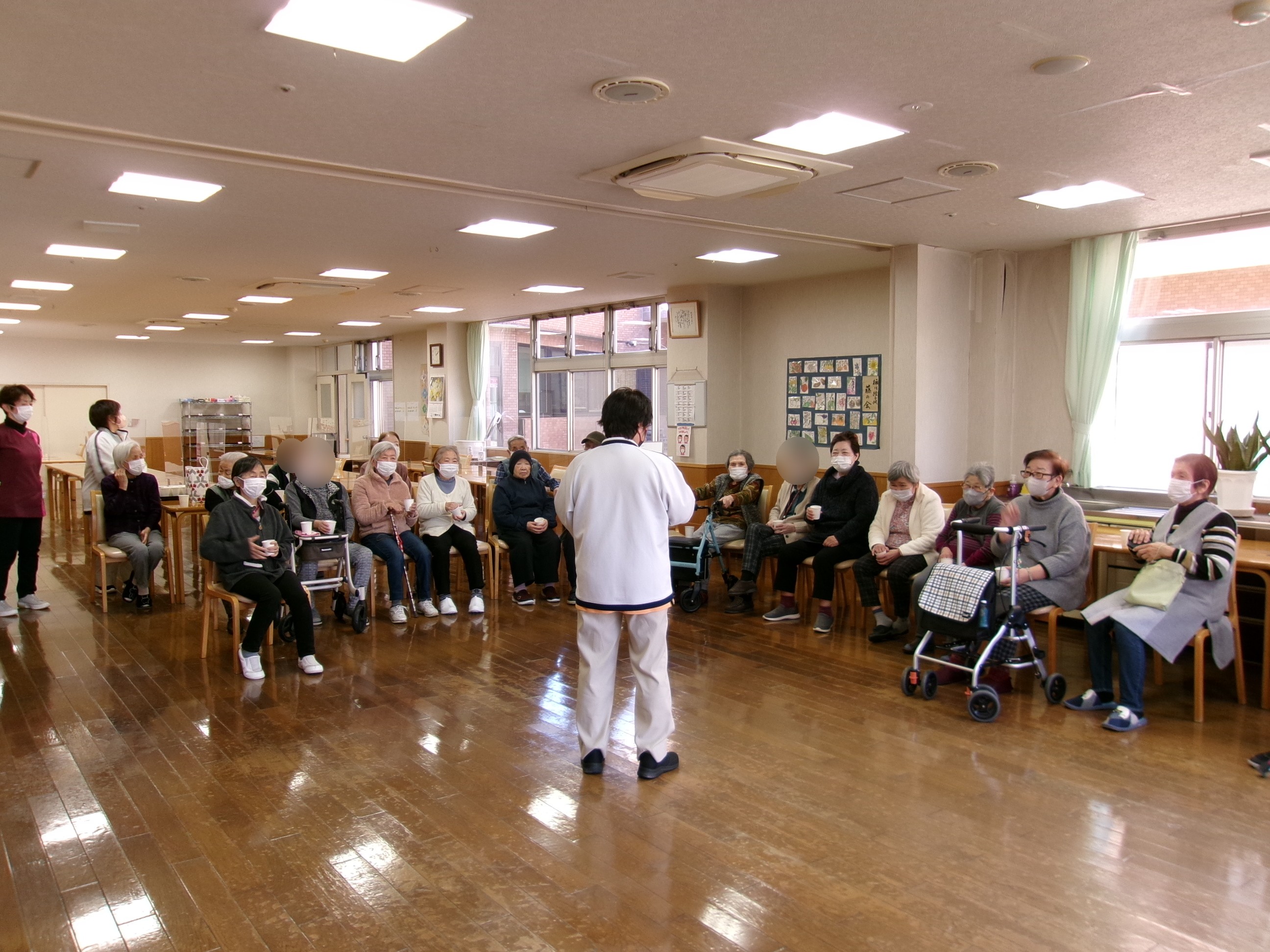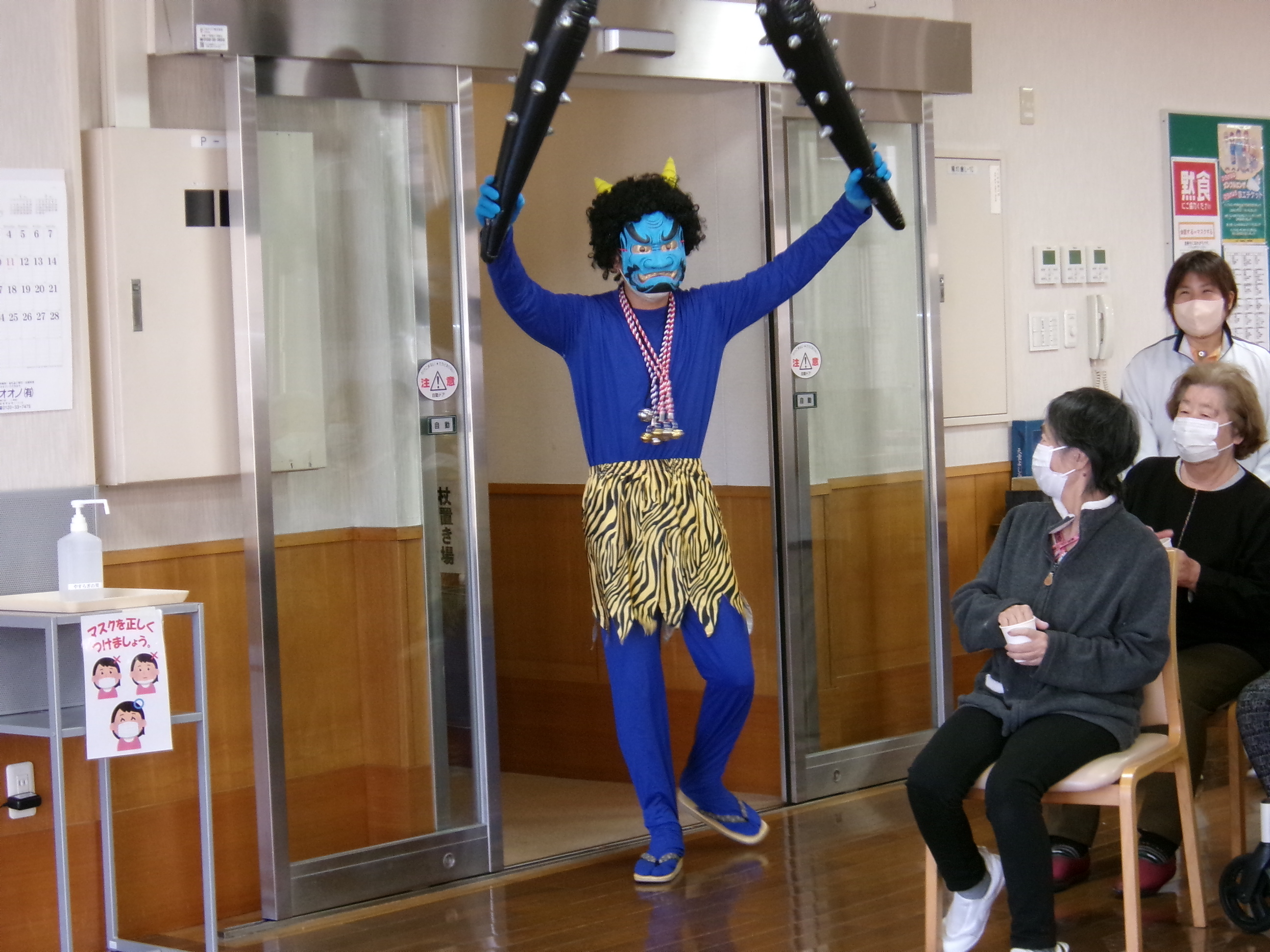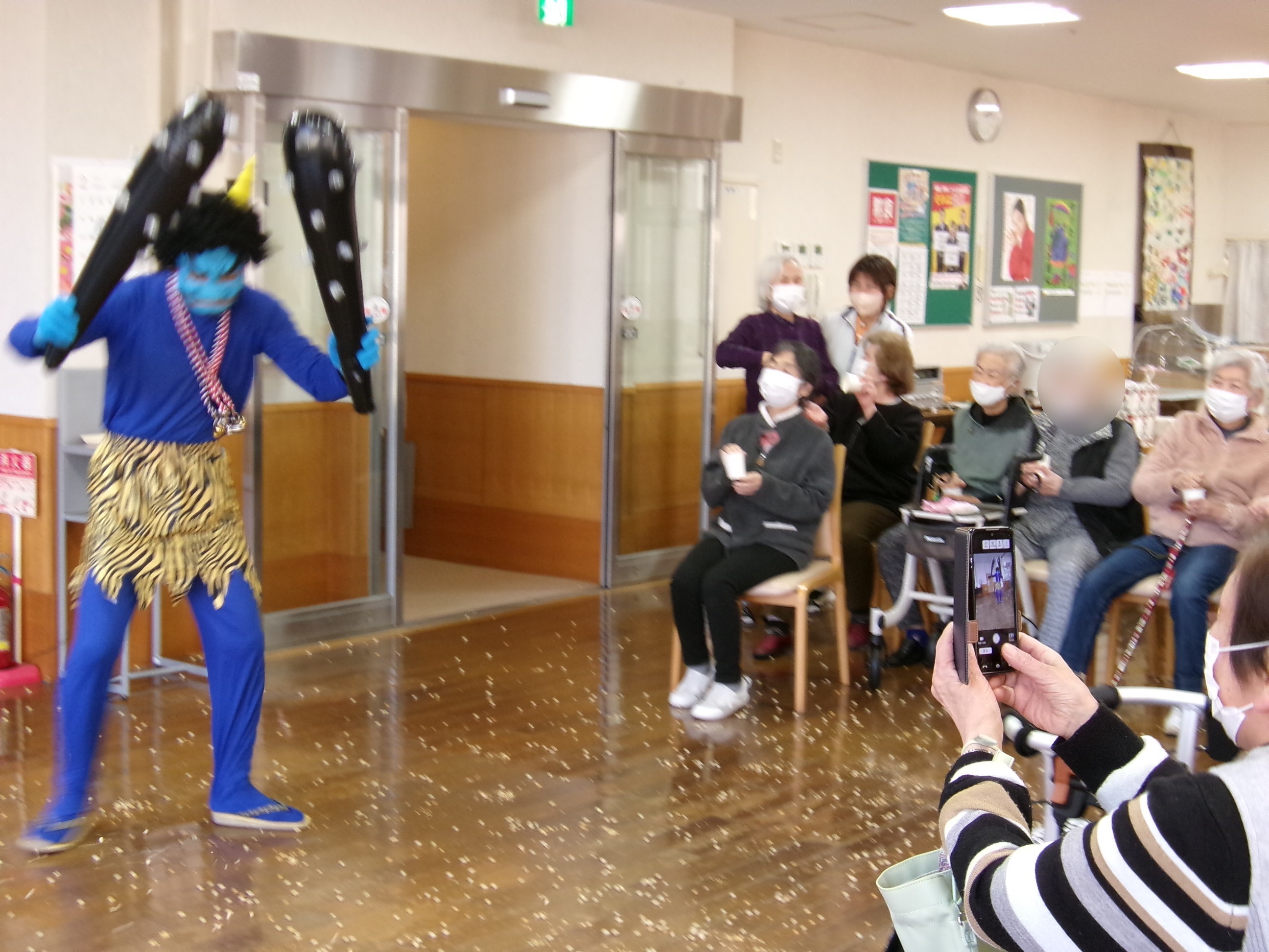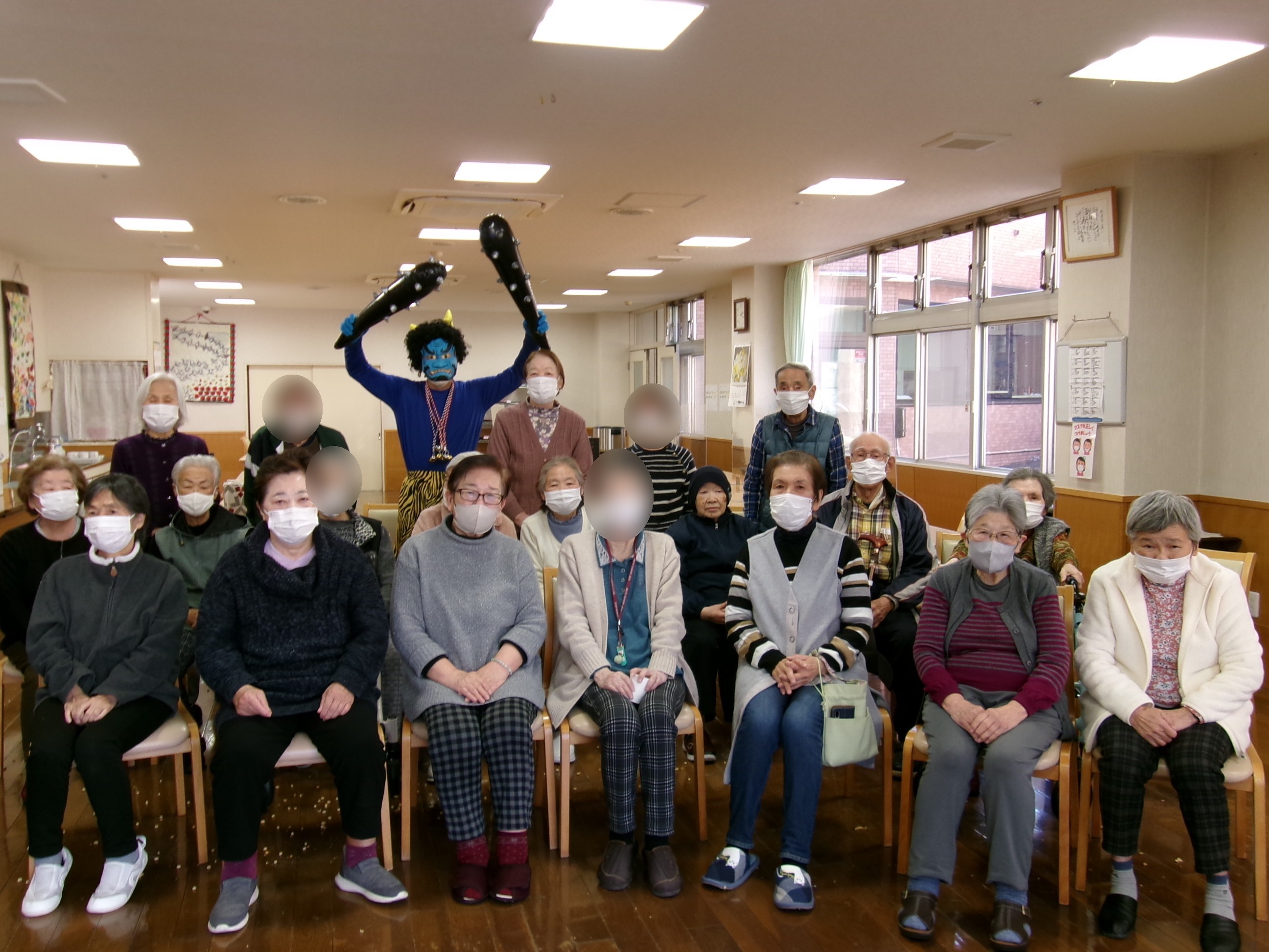 食堂では入居者の皆様が鬼を待ち構えています