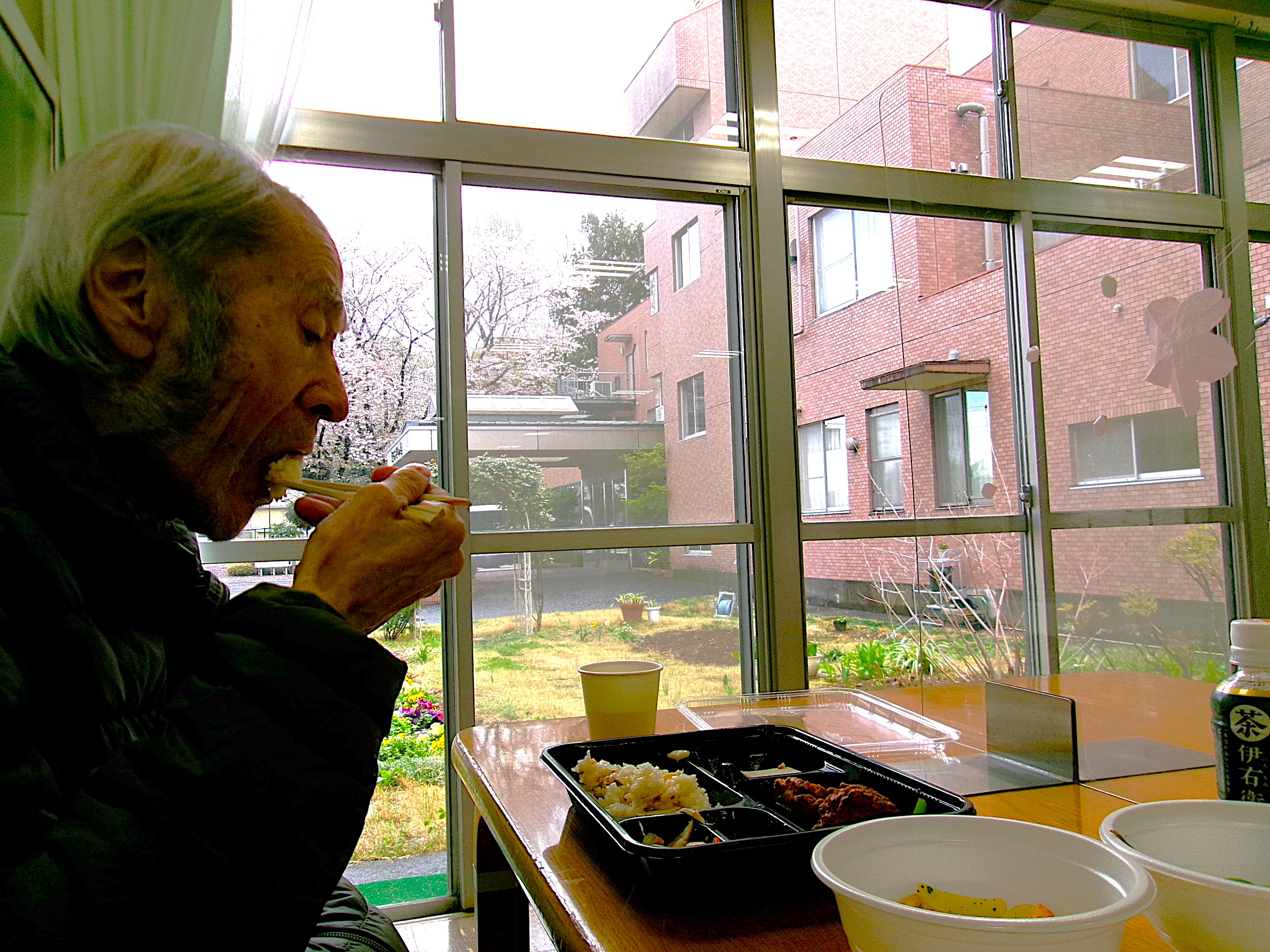 厨房職員手作りのお花見弁当をお召し上がりいただきました