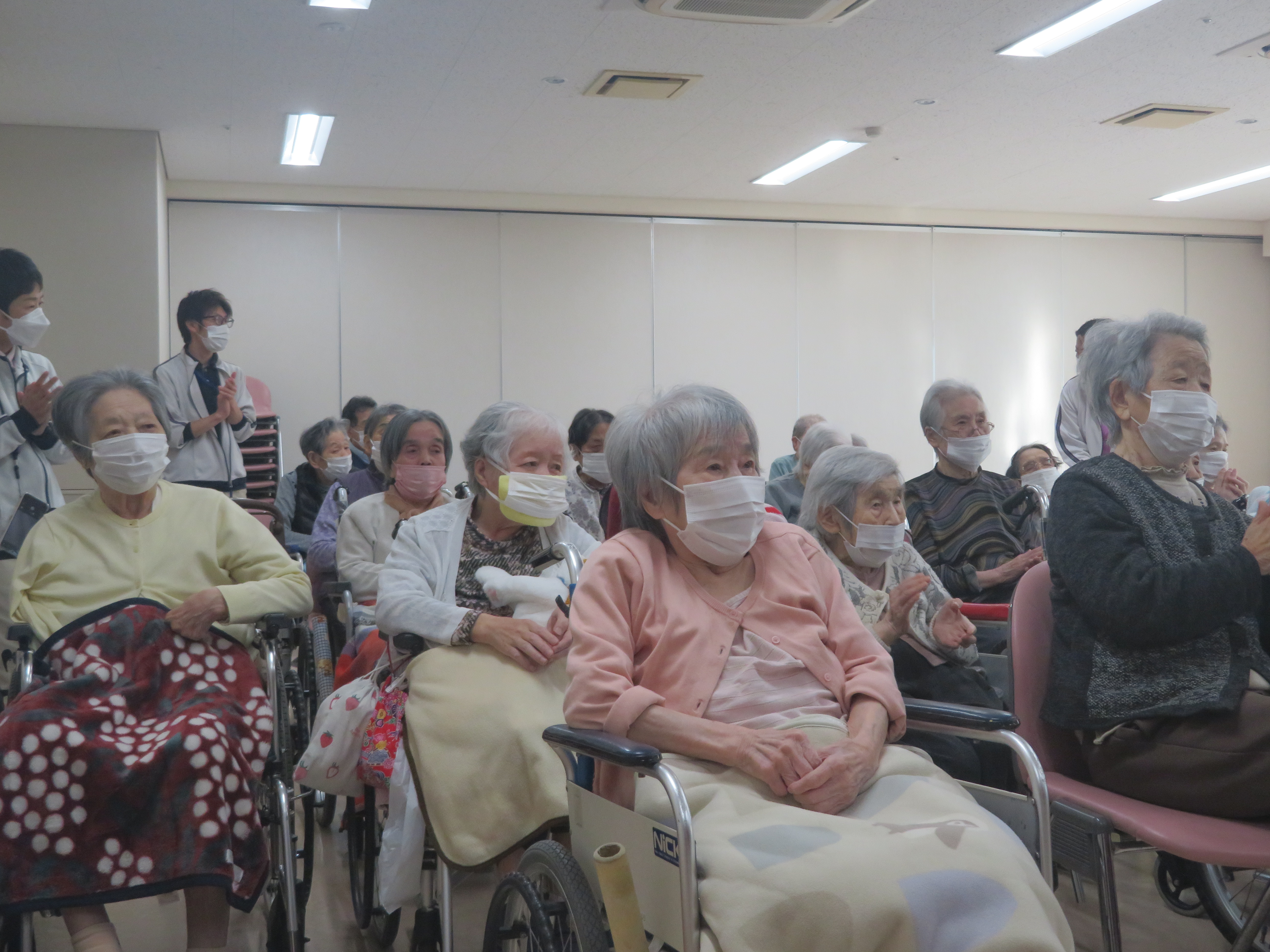 今回、ご利用者の皆様は食い入るように、笑顔あり手拍子ありと とても喜んでいただけました。