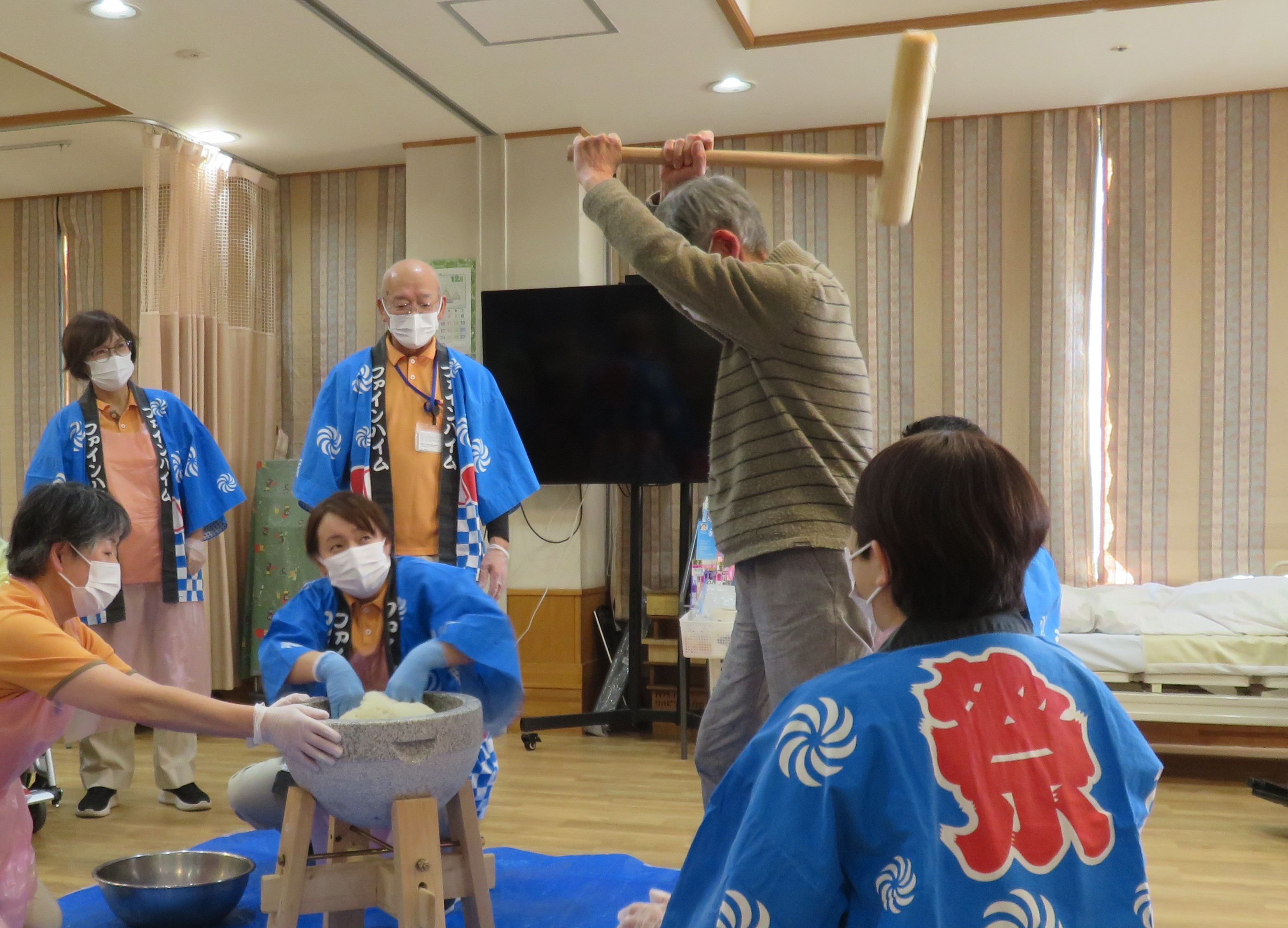今年も残りわずか、ファインハイムでは餅つきを行いました。