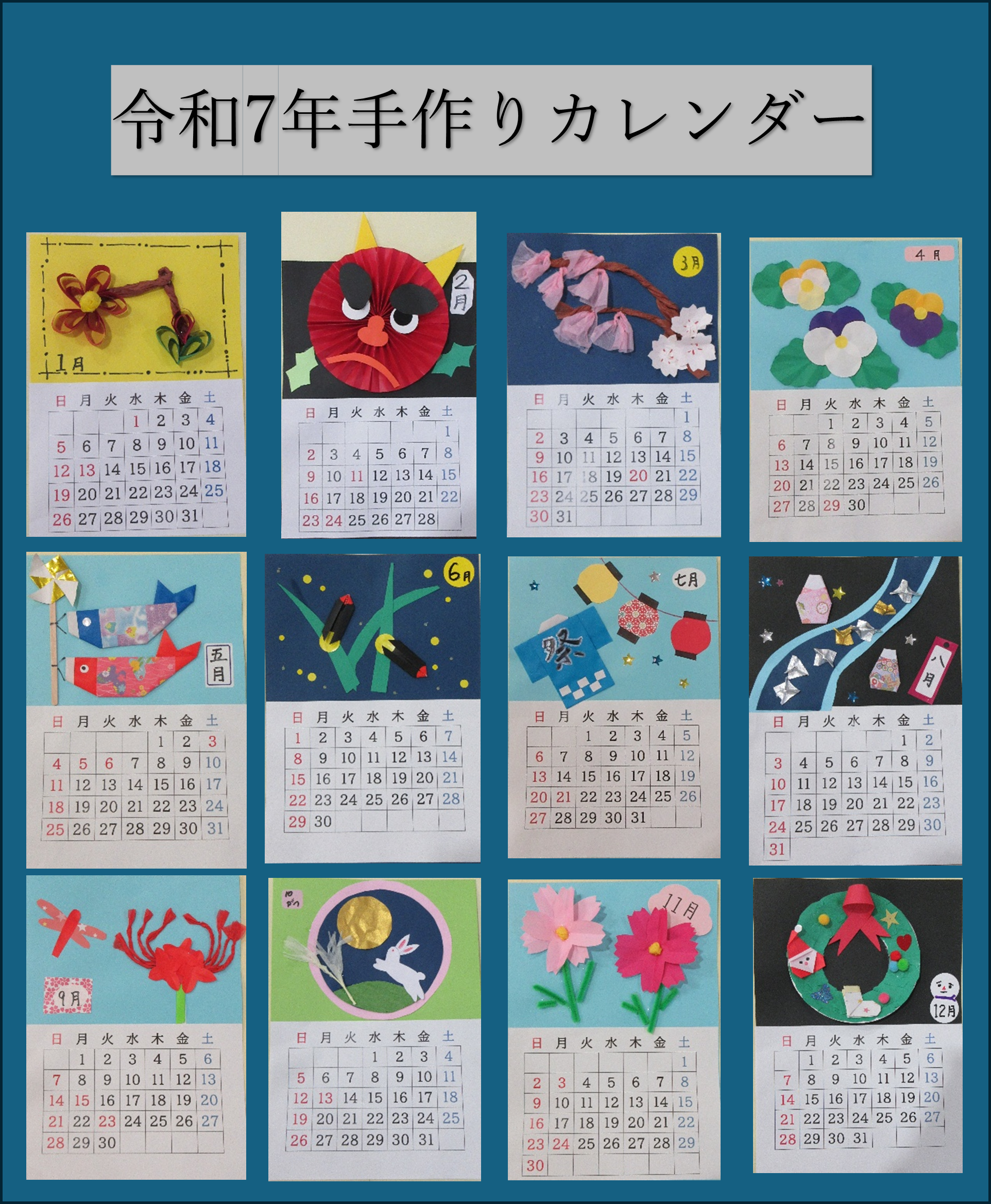 今年1年利用者様が毎月作ったカレンダーをご紹介します。