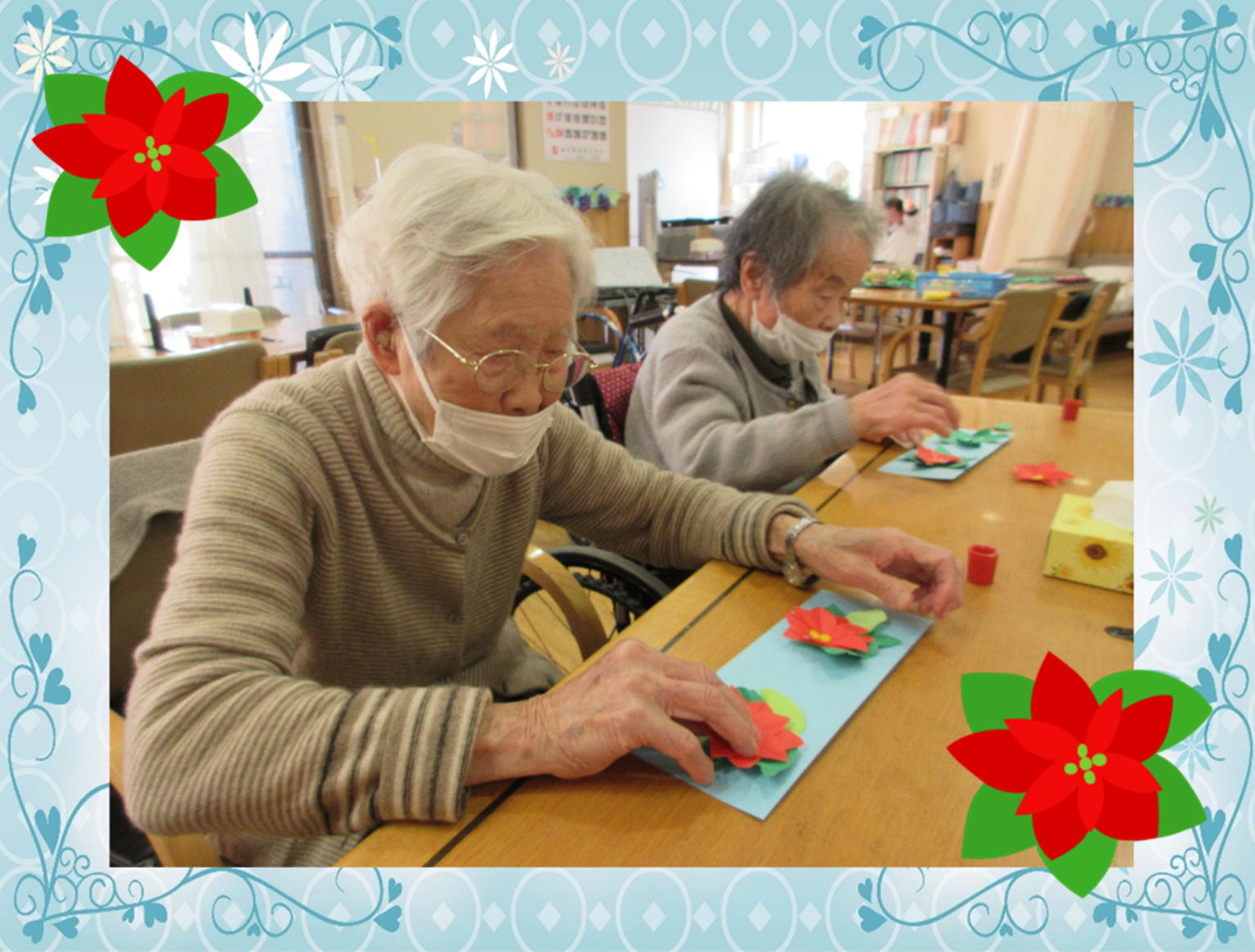 利用者様がクリスマスカレンダ-に挑戦されている様子です。