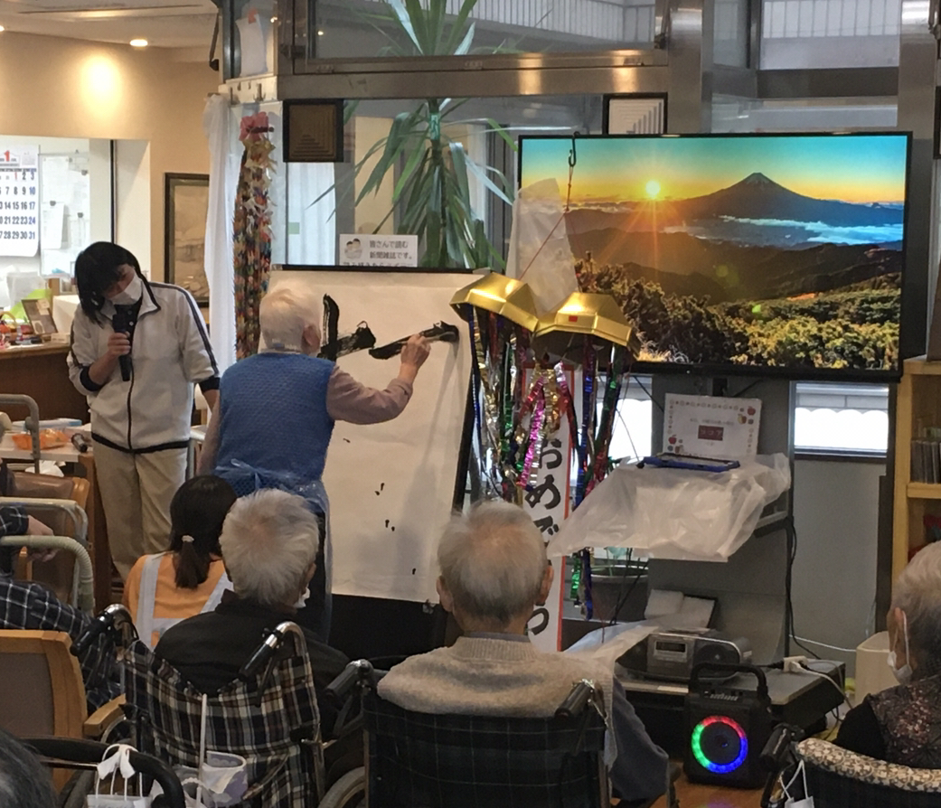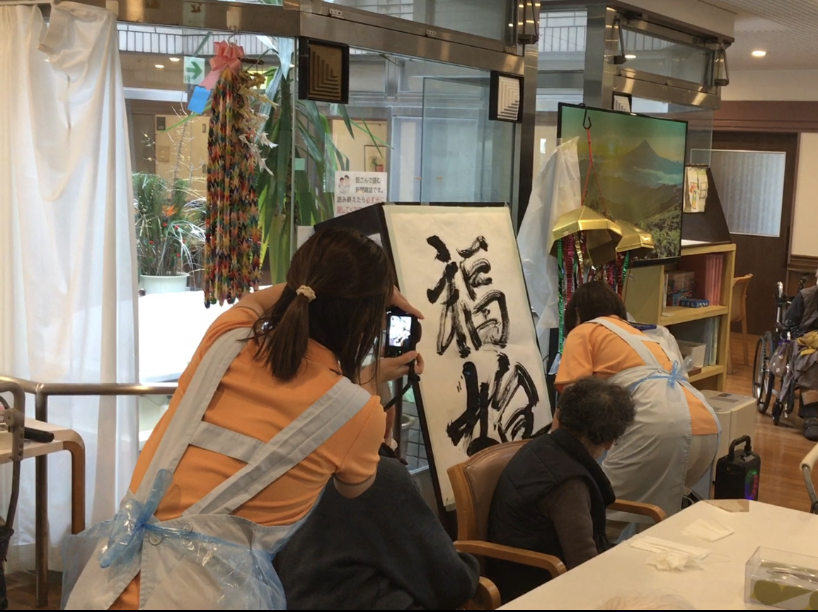 入所のご利用者にも書道パフォーマンスをして頂きました😊