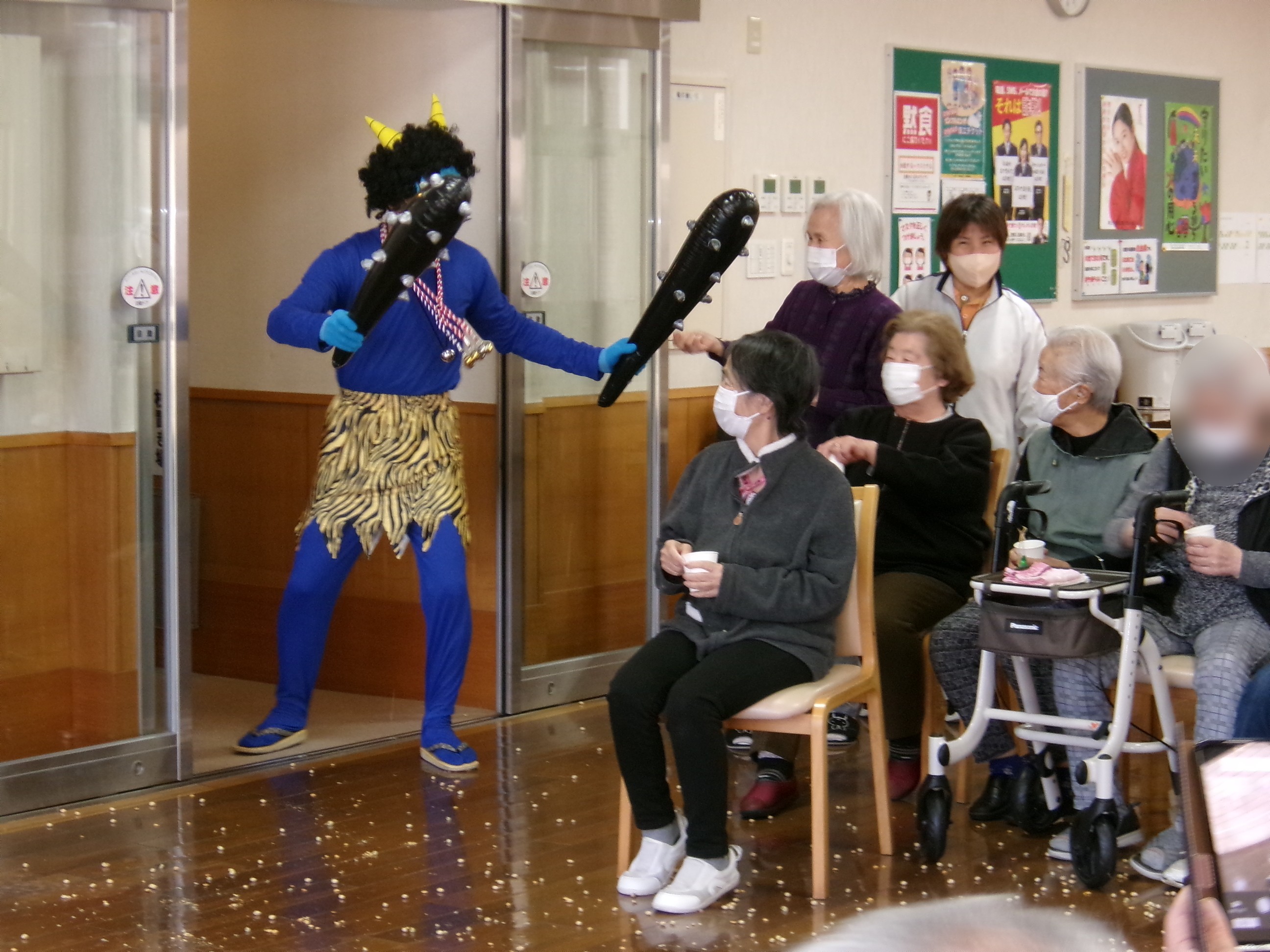 食堂では入居者の皆様が鬼を待ち構えています