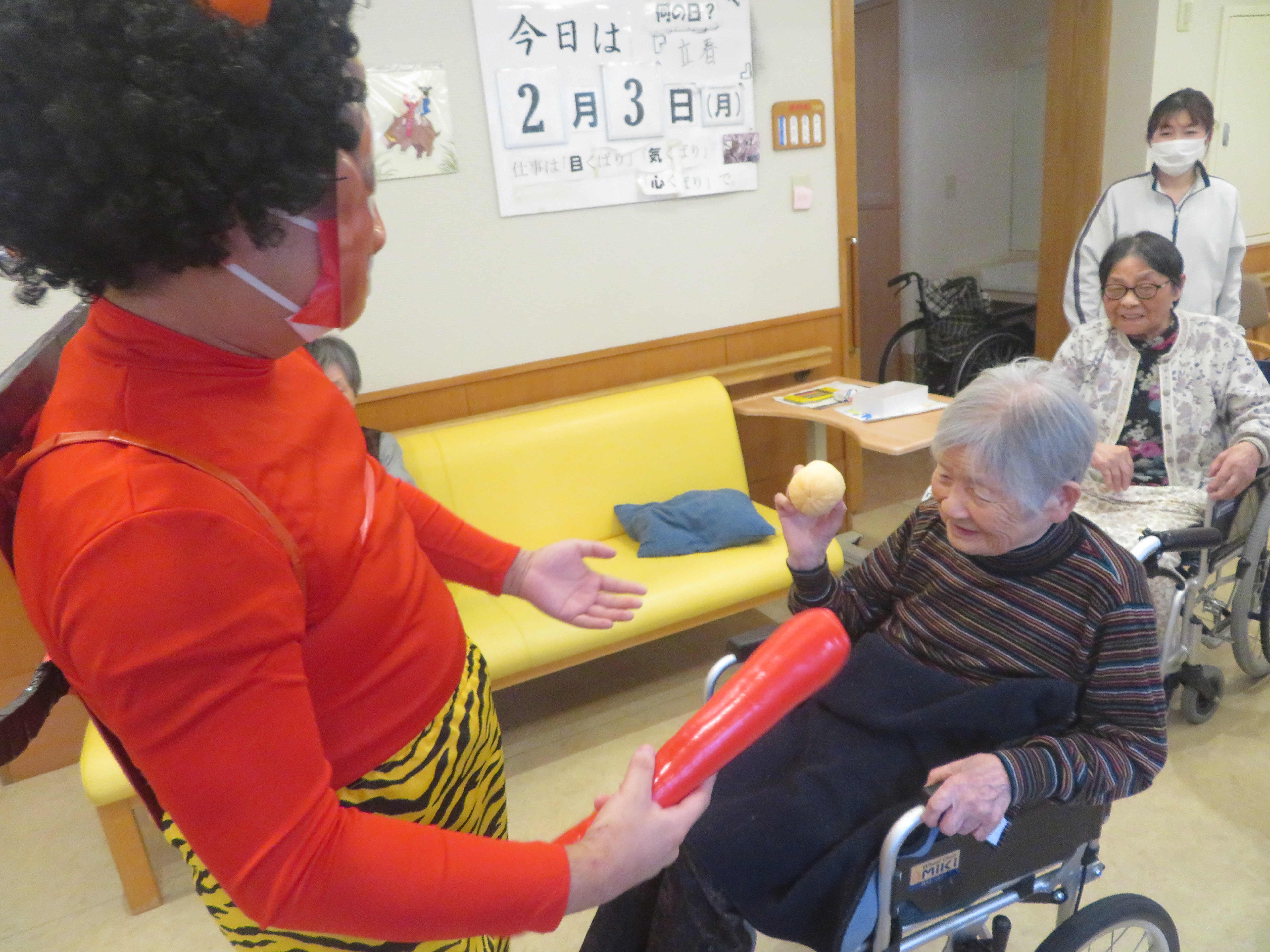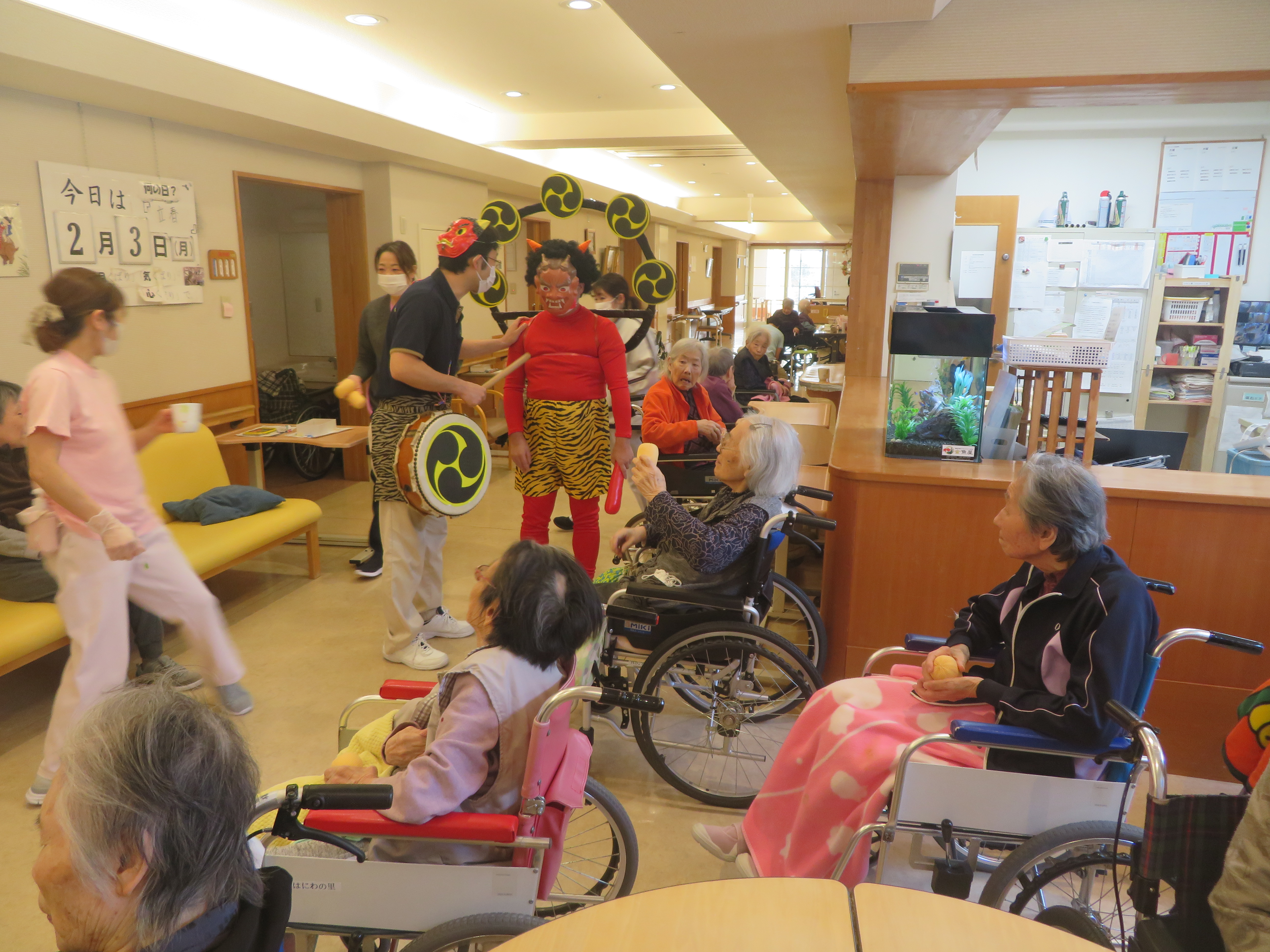 今日は曇り空で余計に寒く感じましたが、「鬼は外!福は内!」の掛け声とともに、皆様一生懸命鬼に豆を投げてくれました。