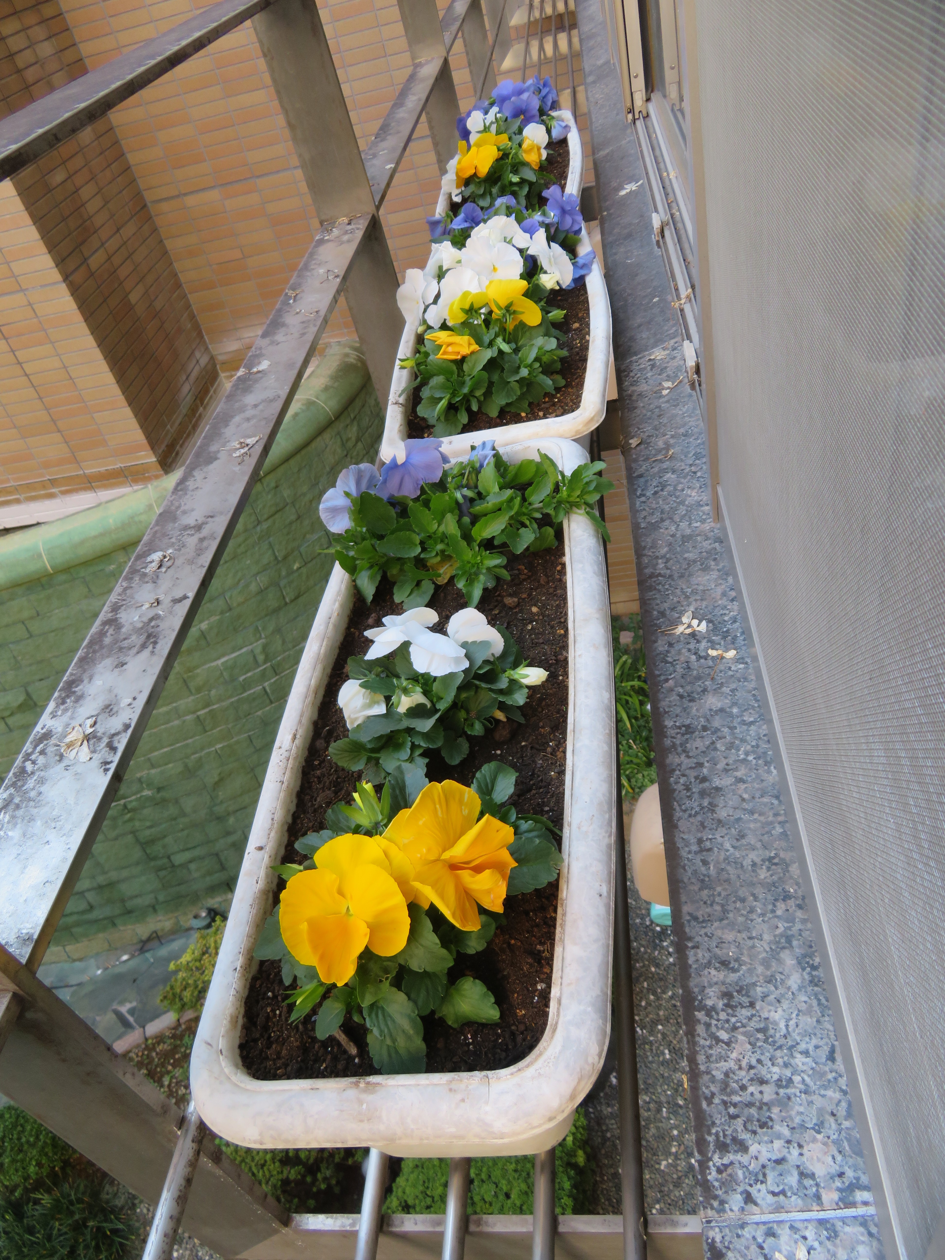 肥料を混ぜてパンジー用の土を作り、植え込みました。