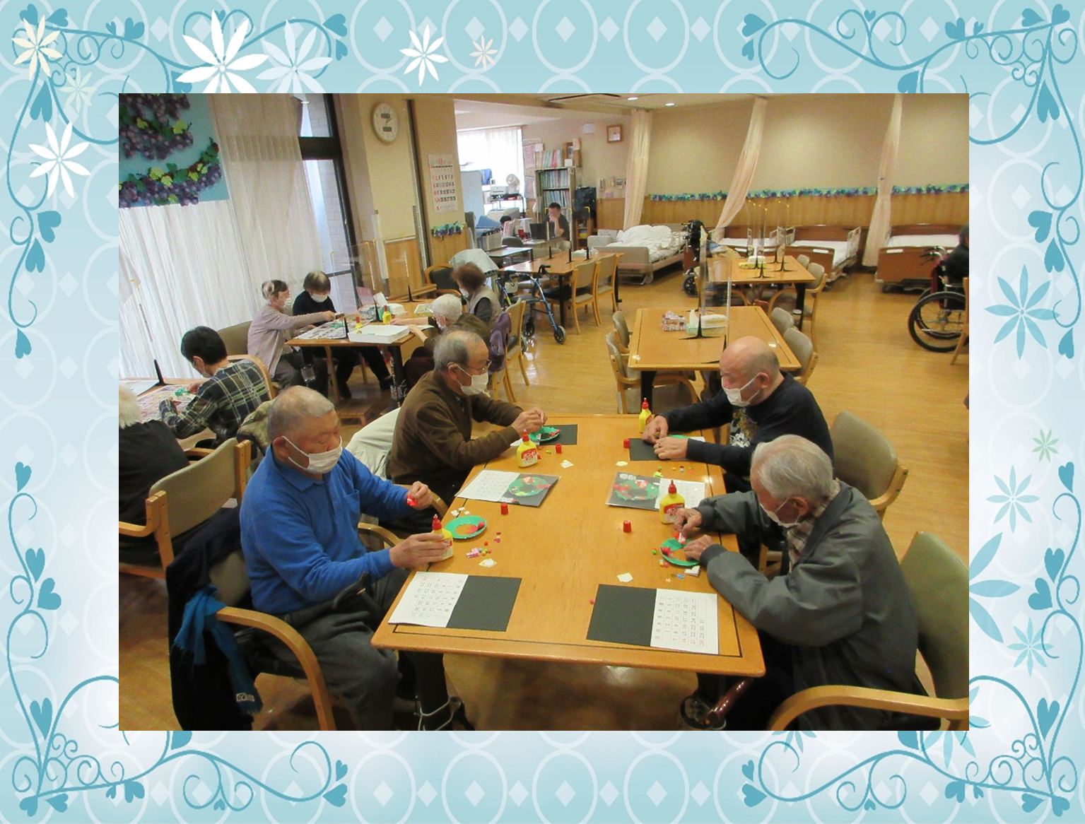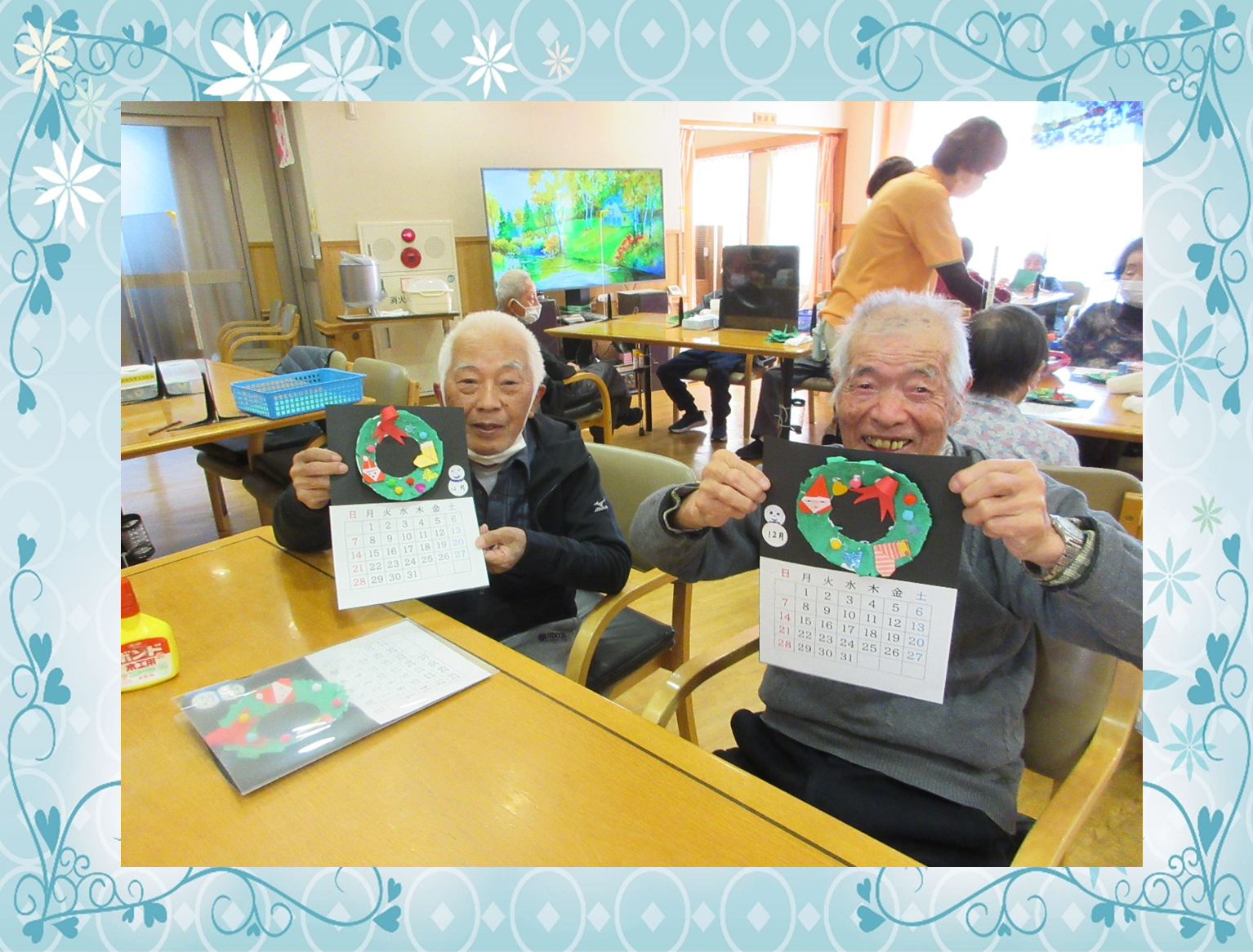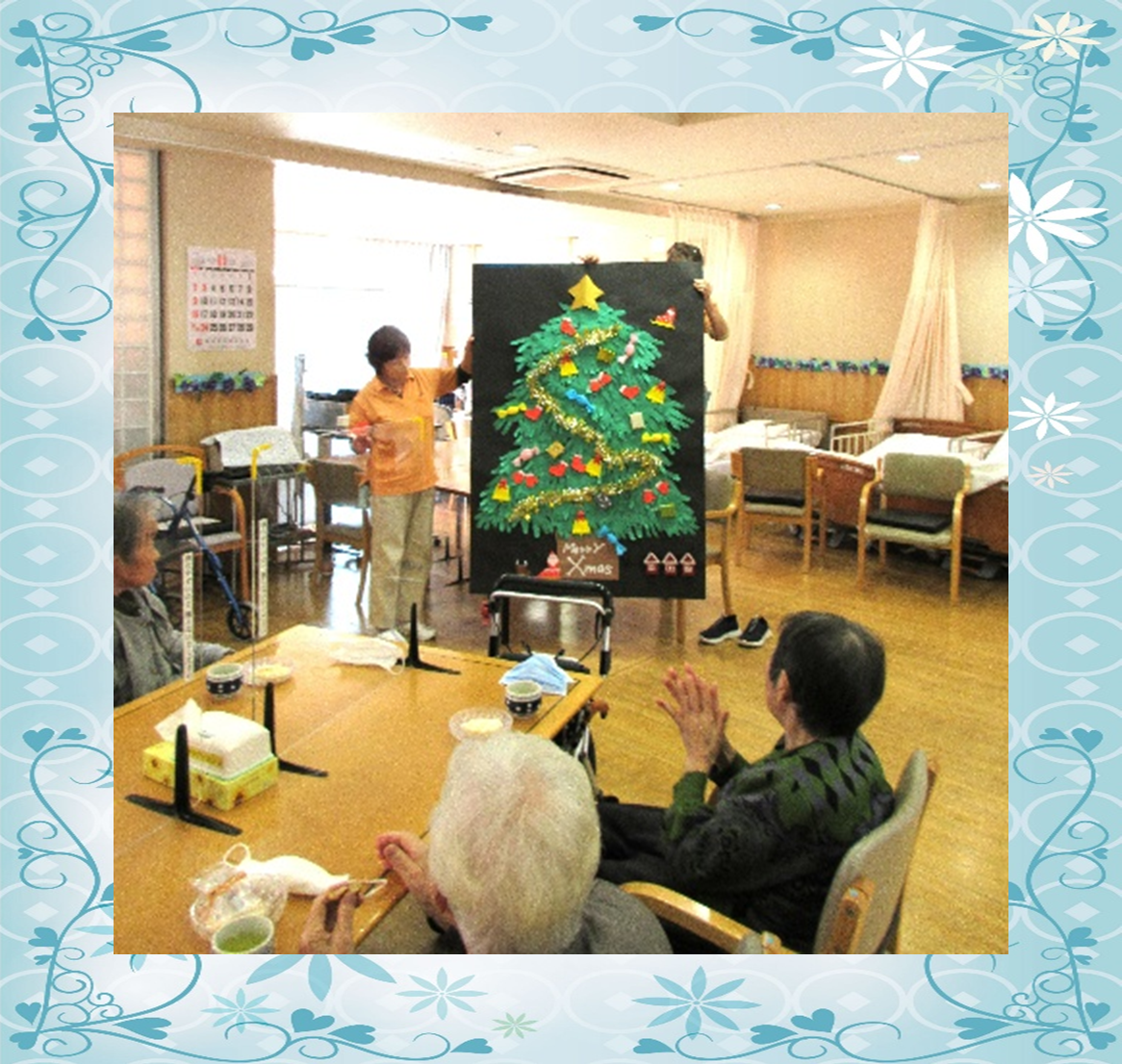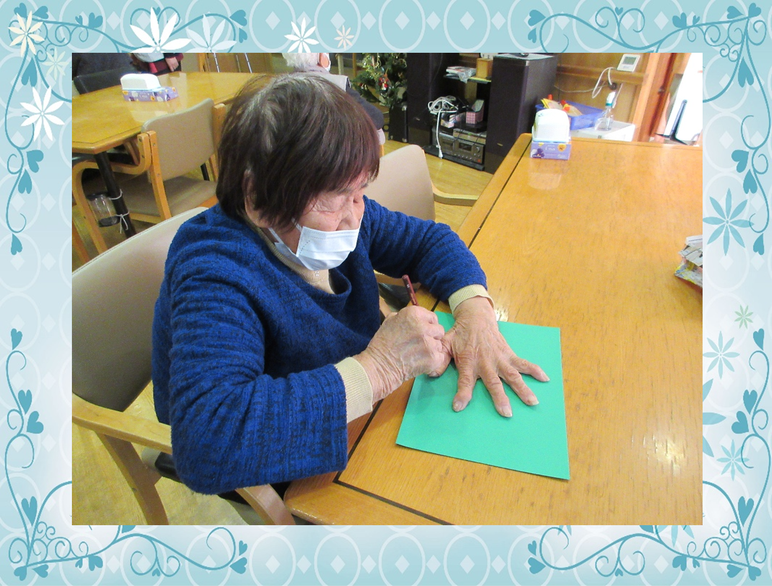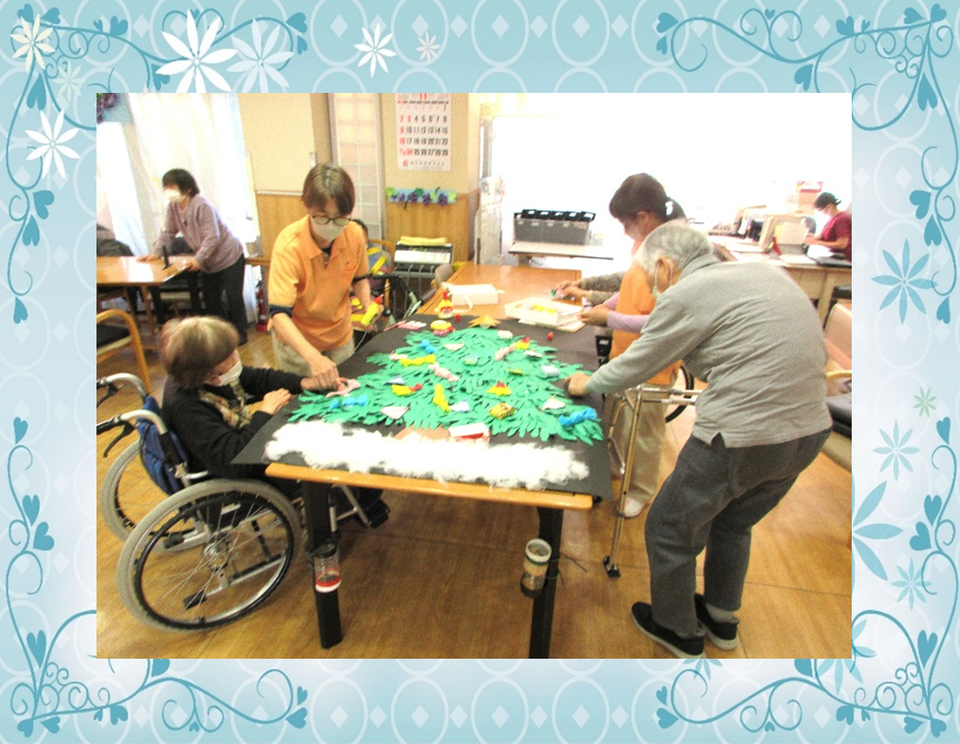 利用者様がクリスマスカレンダ-に挑戦されている様子です。