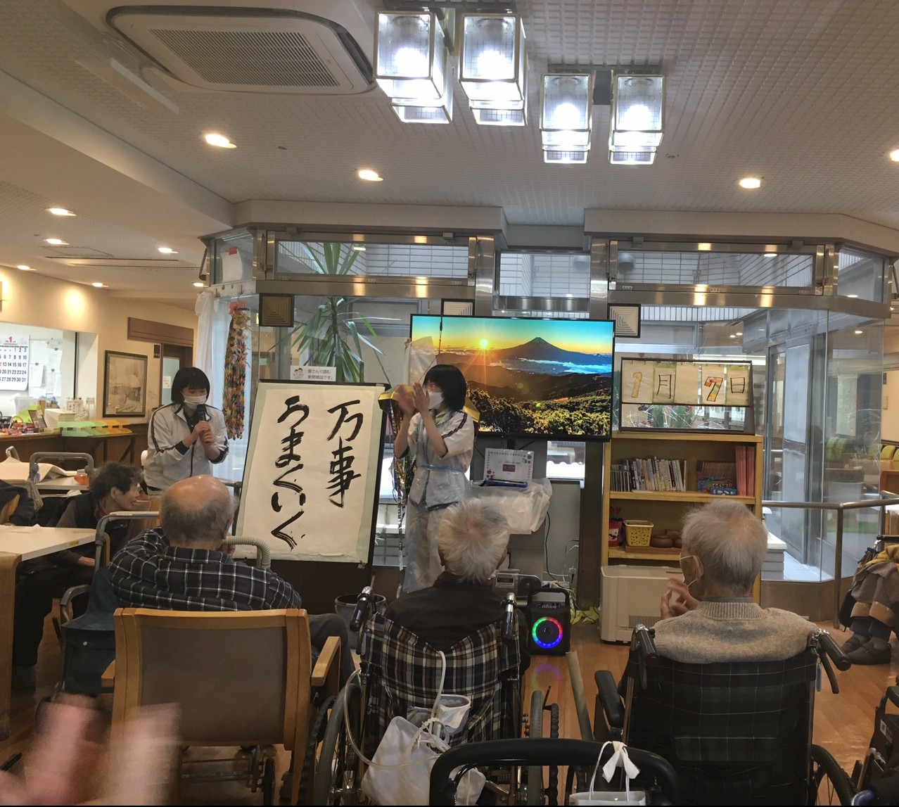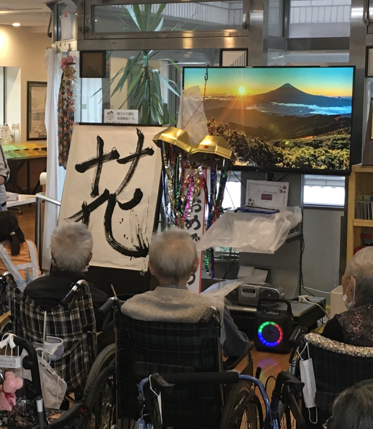 入所のご利用者にも書道パフォーマンスをして頂きました😊